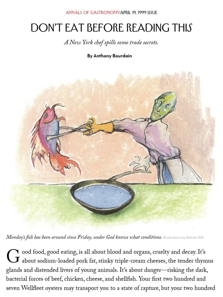 Don't Eat Before Reading This - Web in his famous 1999 new yorker piece about what really goes on in restaurant kitchens, “don’t eat before reading this,” bourdain.